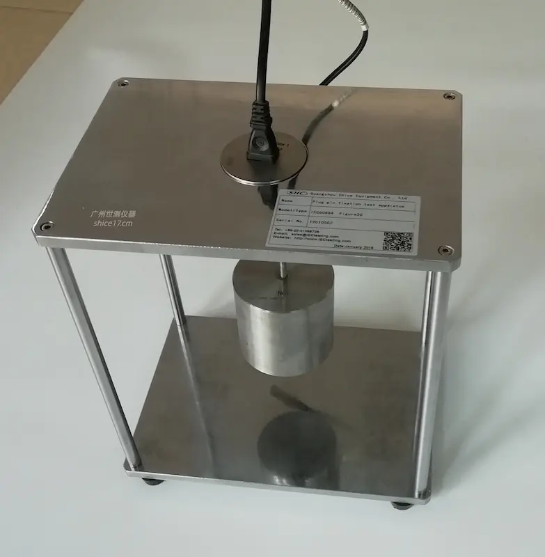 本装置符合GB/T 2099.1-2021之24.11及图30标准的要求,适用于对插头插销的牢固度进行检验。本设备应配套高温箱一起使用。